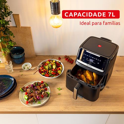 Descubra a Easy Fry Silence XXL, a airfryer mais silenciosa da Moulinex! Proporcionando resultados perfeitos em total serenidade, esta airfryer compacta oferece uma capacidade generosa para toda a família — bem como um design prático que facilita a limpeza e a conservação dos alimentos. Tudo isto, enquanto cozinha 51% mais rápido e consome 70% menos energia do que um forno tradicional.