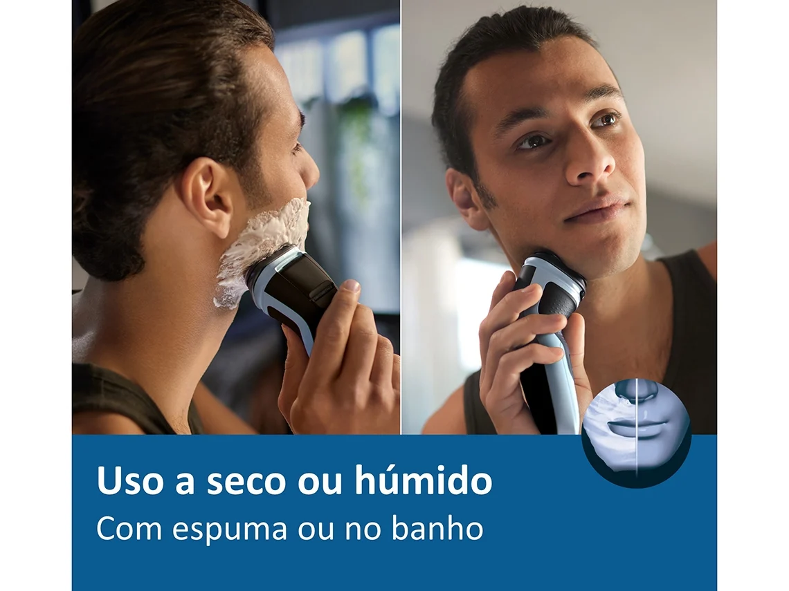 Escolha um barbear a seco prático ou em conjunto com a sua espuma ou o seu gel favorito para um barbear a húmido refrescante, mesmo no chuveiro.