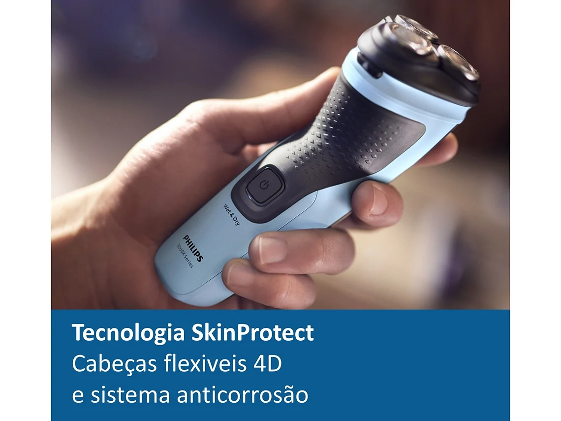 As cabeças oscilantes fletem em quatro direções para manter um contacto uniforme com a sua pele, protegendo-a de golpes e cortes.