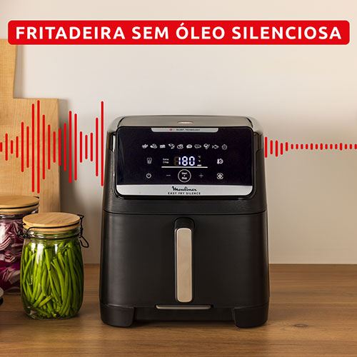 Descubra a Easy Fry Silence XXL, a airfryer mais silenciosa da Moulinex! Proporcionando resultados perfeitos em total serenidade, esta airfryer compacta oferece uma capacidade generosa para toda a família — bem como um design prático que facilita a limpeza e a conservação dos alimentos. Tudo isto, enquanto cozinha 51% mais rápido e consome 70% menos energia do que um forno tradicional.